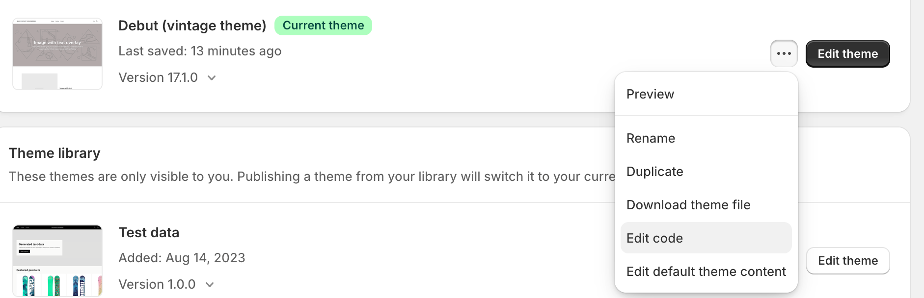 Next to your website, click the 3 dots and click “Edit Code”