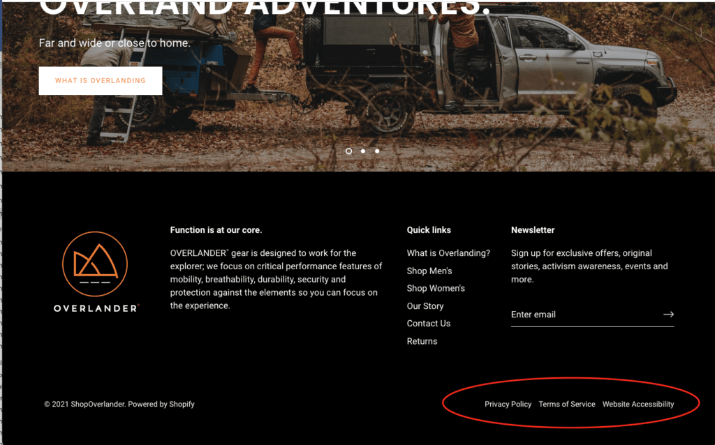 Links to your policies will now surface on the front end of your Shopify theme wherever you’d like. We’ve opted to show them in the Sub footer menu of every page.
