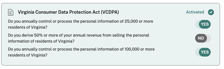 If you answer "Yes" to any of the questions in the above screenshot, then you will be provided an Opt out consent banner for VCDPA coverage.