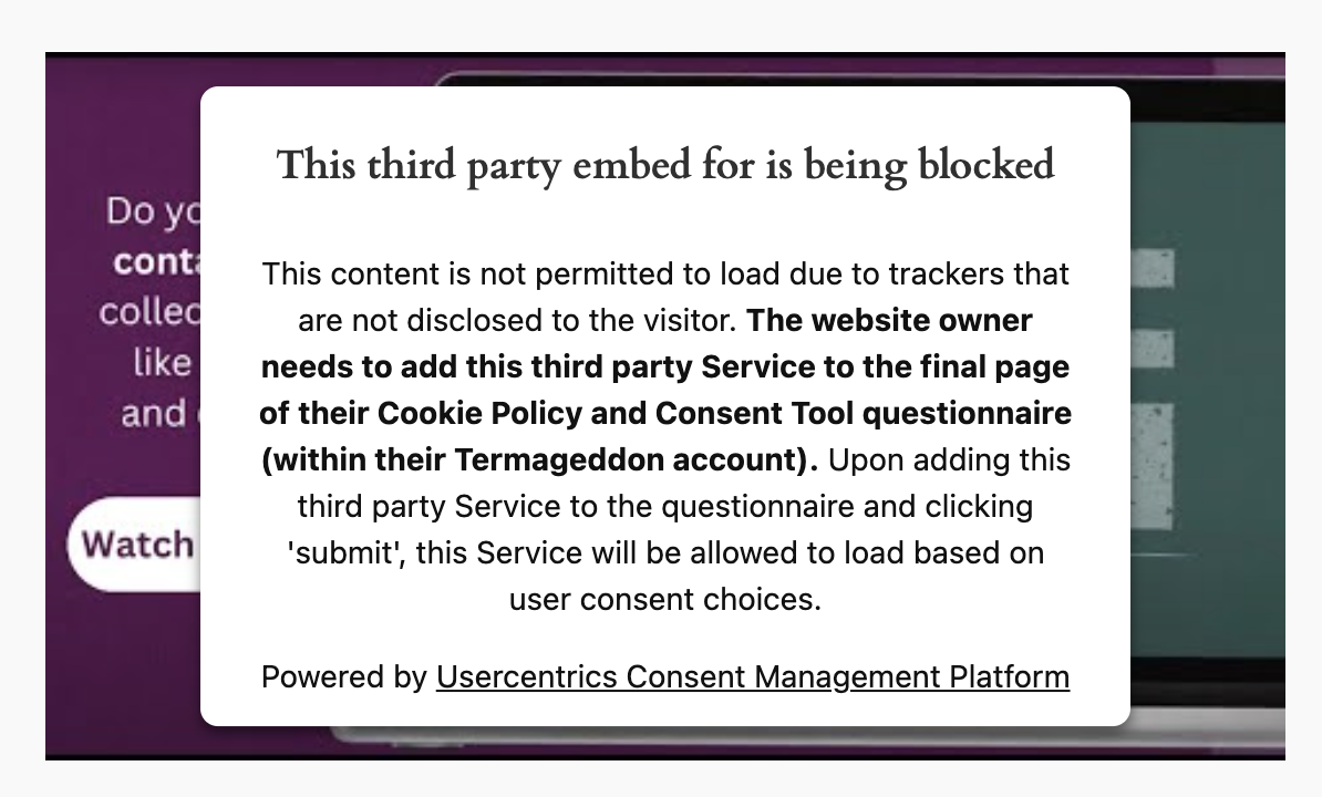 Did you recently install the Usercentrics consent solution onto your website and notice a blocker message looking similar to this: