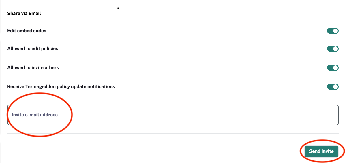Under “Share via Email”, enter the email address to receive the invite and click “Send Invite”: